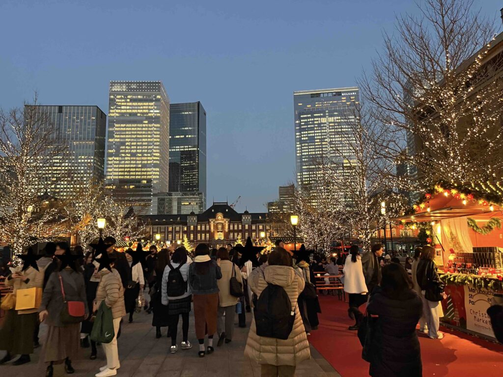 ゴールの東京駅は冬になるとイルミネーションをやっているので、最後はキラキラで疲れを忘れてしまいます。